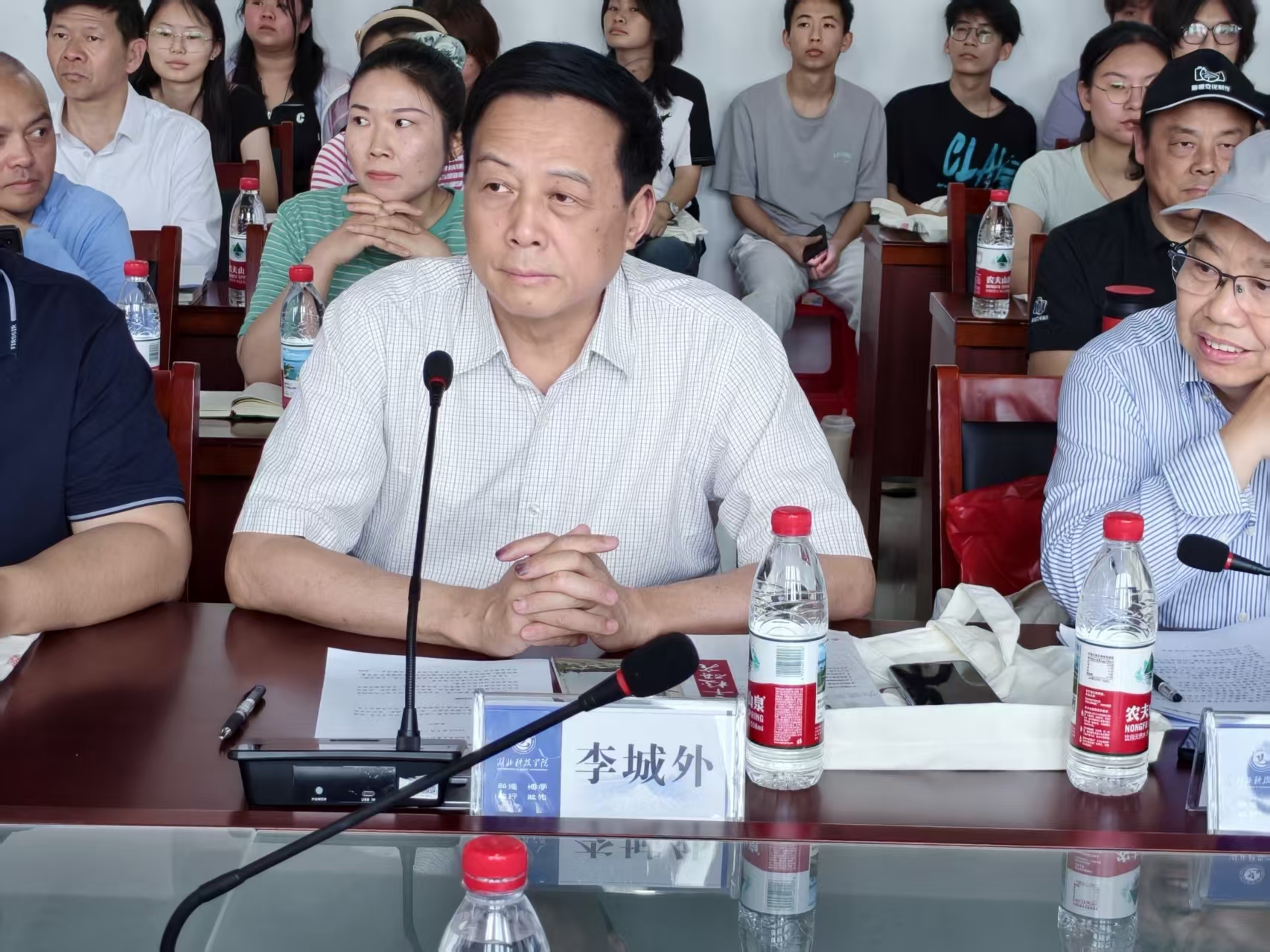 初夏的攬月湖畔,楊柳依依,碧水迢迢。2025年5月7日,湖北省向陽湖文化研究會(以下簡稱研究會)第四次會員代表大會在湖北科技學院(以下簡稱湖科)隆重召開。研究會黨支部書記李城外代表第三屆理事會作題為《堅守陣地,砥礪前行,為鞏固鹹寧在全國五七幹校研究中的領先地位而不懈努力》的工作報告。大會不僅是對過去5年來向陽湖文化研究工作的全面總結,更是在新的時代背景下,吹響了推動向陽湖文化和五七幹校研究邁向新高度的衝鋒號。