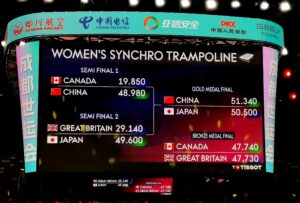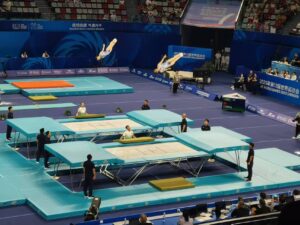 中華新聞通訊社/中華時報811日訊(記者 悅聲/文攝) 810日,2025年成都世運會蹦床女子雙人同步決賽舉行。中國組合胡譯乘、張欣欣獲得冠軍。