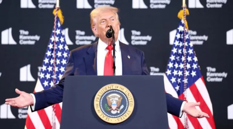 視訊會議結束後,川普在華盛頓特區甘迺迪中心發表演說: