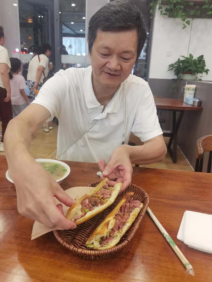 22日傍晚,南天夜市燈火初上,喧囂漸起。帶著秦皇臺的千年風煙與老虎石畔的浪花呢喃,行至喧鬧旁一處樸實的“驢肉火燒”小店。李鵬先生遞過熱騰騰、僅十元一份的驢肉火燒。外皮酥脆焦香,內裏肉質軟嫩,配上一碗熱氣騰騰的爐雜湯,簡單至極,卻帶來無與倫比的滿足感。