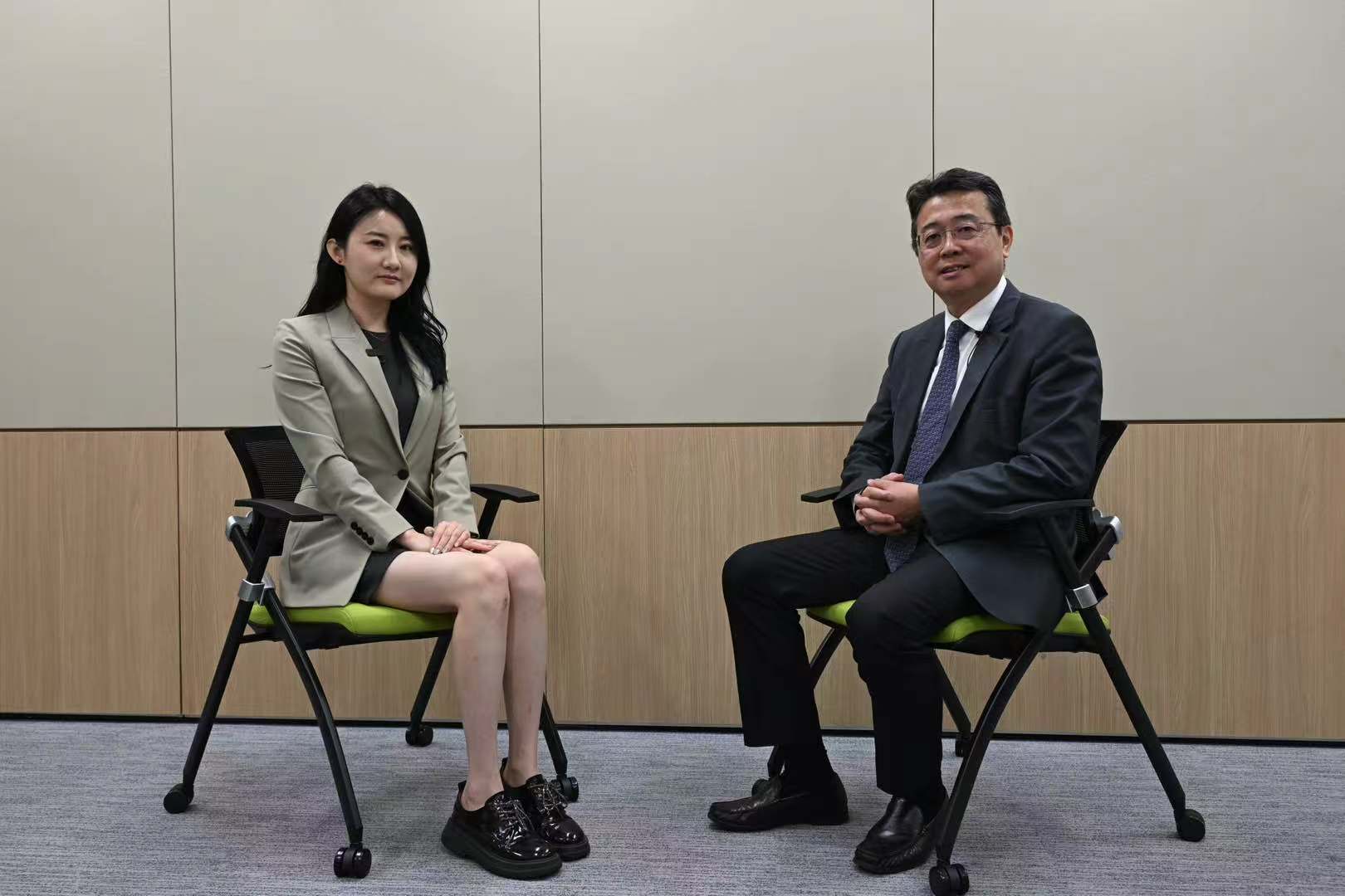 7月30日,香港特區立法會議員、香港地方志中心總編輯劉智鵬(右)接受中新社記者專訪。 中新社記者 李志華 攝