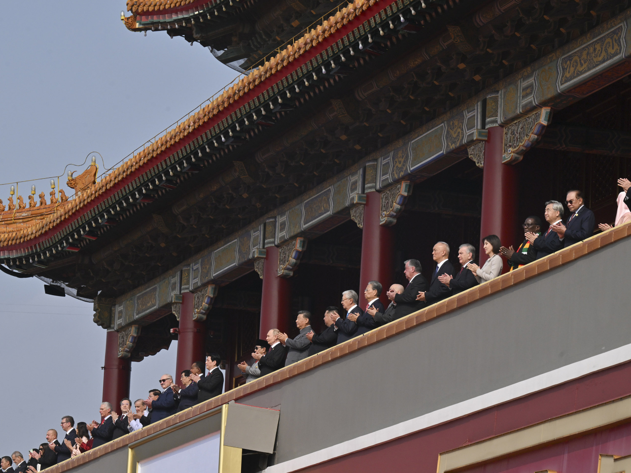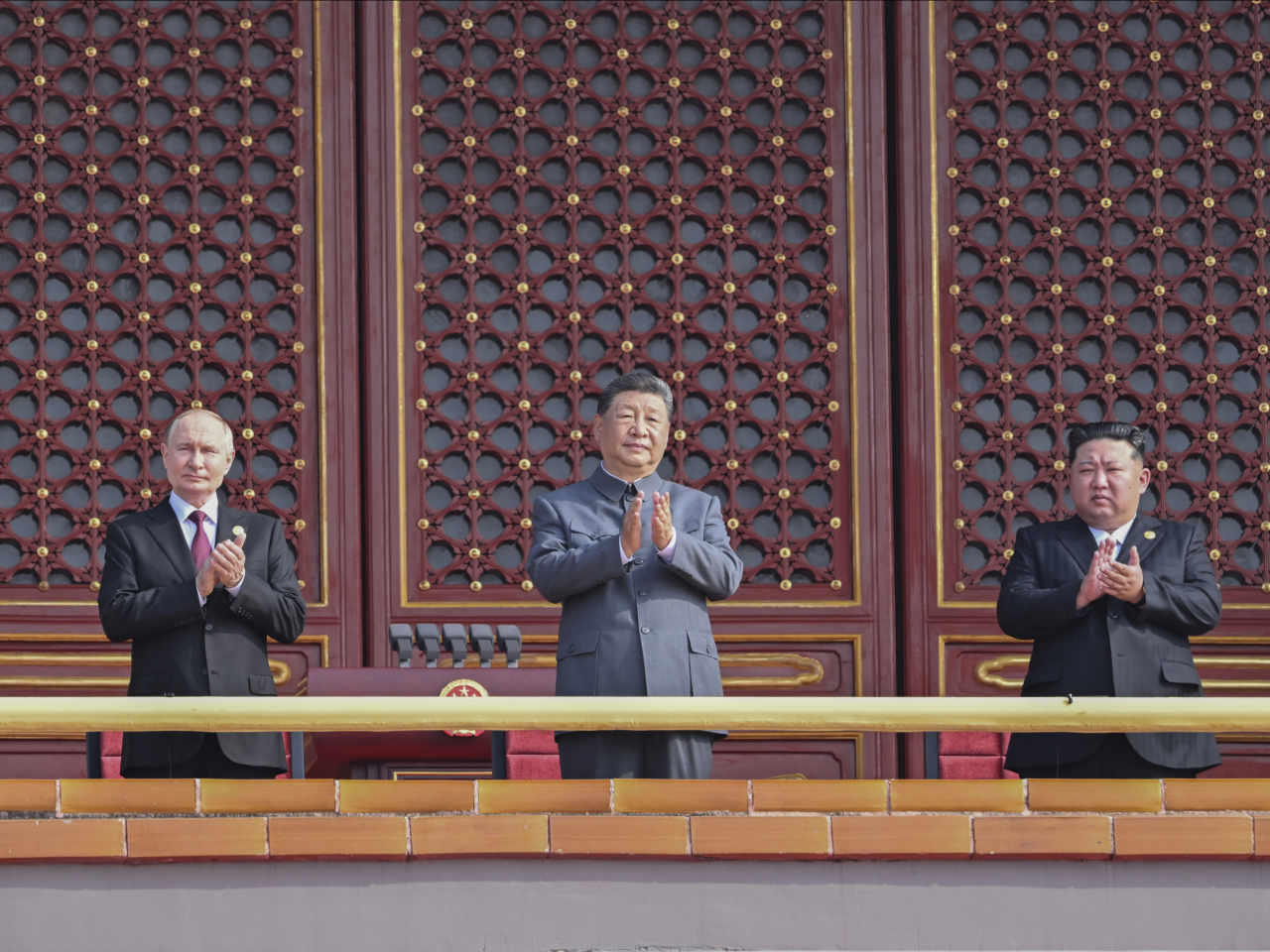 中國人民抗日戰爭暨世界反法西斯戰爭勝利80周年紀念大會(九三閱兵),今天上午在北京天安門前舉行。中、朝、俄領導人集體合照時站在中央位置,並在融洽氣氛中並肩登上天安門城樓,之後中國國家主席習近平、俄羅斯總統普京及金正恩依次現身城樓,出現三國元首並肩亮相的歷史場面。今次是冷戰結束後,中、朝、俄領導人首次在正式場合上聚首,對上一次可追溯到前蘇聯時期。中共總書記習近平表示,加快建設世界一流軍隊,堅決維護國家主權統一、領土完整,為實現中華民族偉大復興提供戰略支撐。