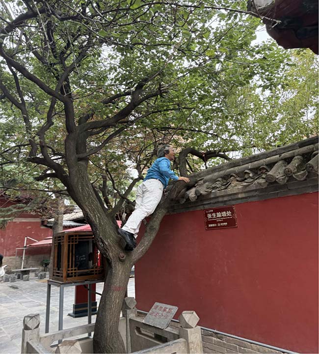 8月29日到永濟普救寺。這座因《西廂記》聞名的佛教寺院,如今成為許多年輕人嚮往的愛情聖地。在梨花深院,江坤體驗了一把新郎張生翻牆男,當年崔鶯鶯給張珙回信約他一見,張珙興高采烈地赴約,爬上高高的牆,只為來見她一面。