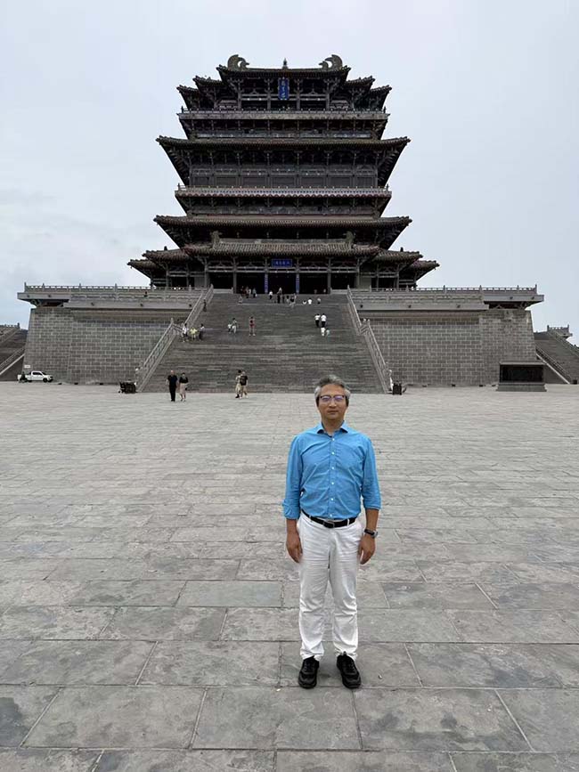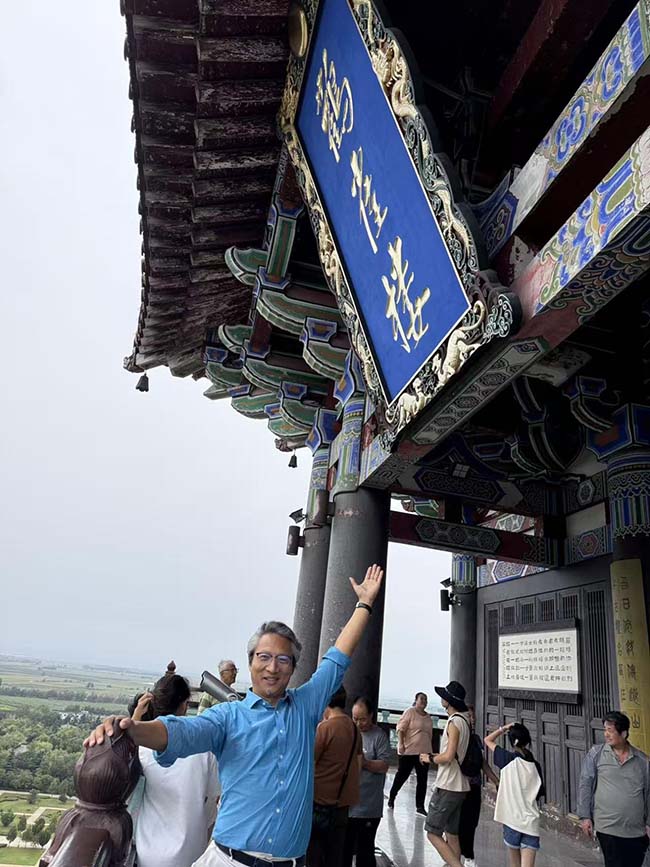“唐宋時期此樓可望黃河漕運千帆競發,今雖河道變遷,然文化座標永存。”江坤憑欄拍攝全景:”當在香港的國際媒體展出此景,讓港人感受’更上一層樓’的時空縱深。”