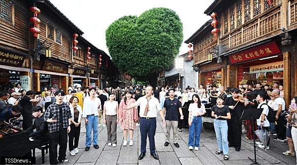 【記者王輝丹、通訊員王裕慶/福州報導】昨(五)日,第十三屆海峽青年薈·「烽火同聲———紀念抗戰勝利暨臺灣光復八十周年兩岸青年合唱快閃活動」在福州開展街巷音樂快閃,共邀請近百位兩岸音樂藝術類青年連袂參演。