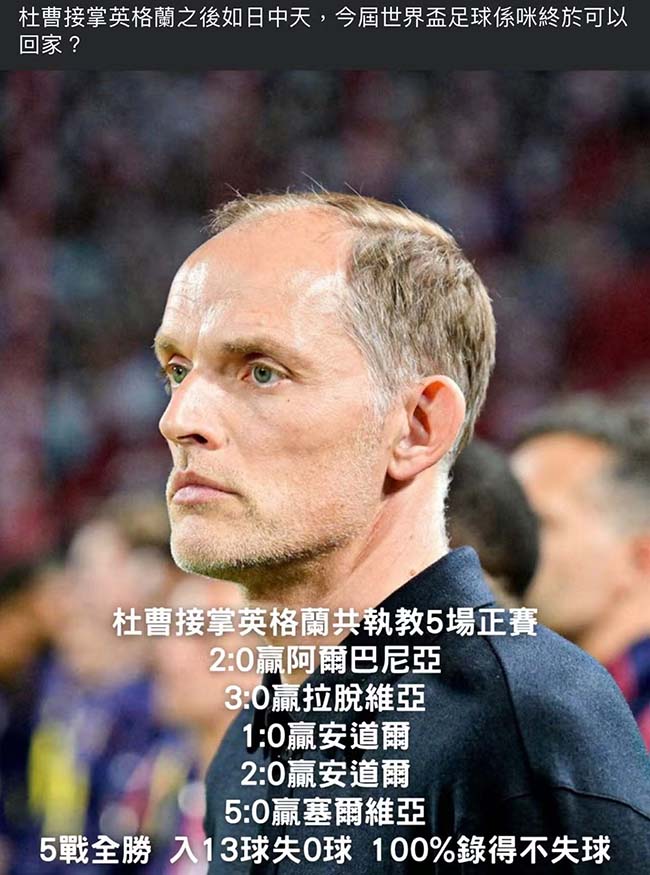 花絮三、接替南門執英格蘭教鞭的圖赫爾(德國人)的確有料!