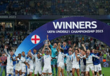 英格蘭雖然作客布爾格萊德,雖然戰前數名大將受傷,但無阻三獅張牙舞爪,將對手撕咬得遍體鱗傷! 開賽第33分鐘,球王凱恩接賴斯妙傳,一記漂亮的獅子搖頭將皮球送進網窩,他藉此以74粒國家隊入球穩坐射手王寶座! 僅過2分鐘,馬杜埃凱挑射入網,英格蘭錦上添花2:0領先上半場。