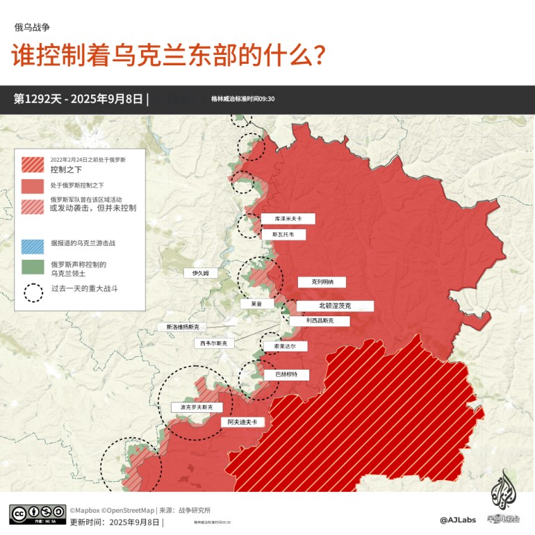 華盛頓智庫戰爭研究所稱,俄羅斯8月份在整個前線的進攻面積估計為499平方公里(190平方英里),但其損失與普京最近在北京聲稱的所有駐烏克蘭俄羅斯軍隊「均以不同的速度順利推進」的說法相矛盾。