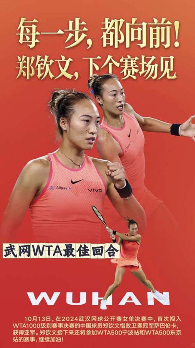 二、中國22歲網球名將鄭欽文在WTA1000羅馬賽中,克服心理壓力,面對倬號"大壯"的世界冠軍薩巴連卡,敢打敢拼!以6:46:3的優秀成績,兩盤全勝取得了優勝,成功闖入四強,確系女子網球的一朵鏗鏘玫瑰![]世界排名升至第6 !