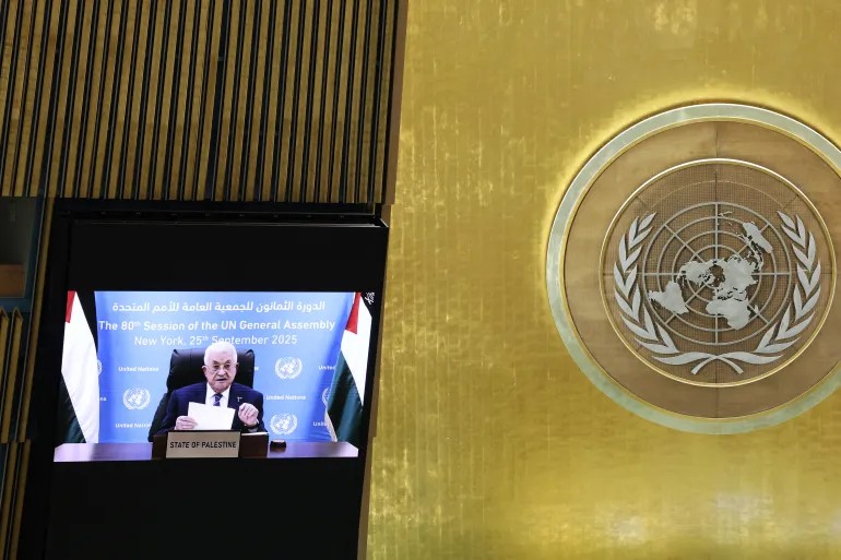 阿巴斯表示:“今天我向你们发表讲话,是在加沙地带的巴勒斯坦人民经历了近两年的种族灭绝、破坏、饥饿和流离失所的战争之后。”