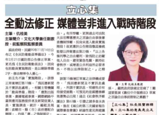 【立心集】全動法修正 媒體豈非進入戰時階段