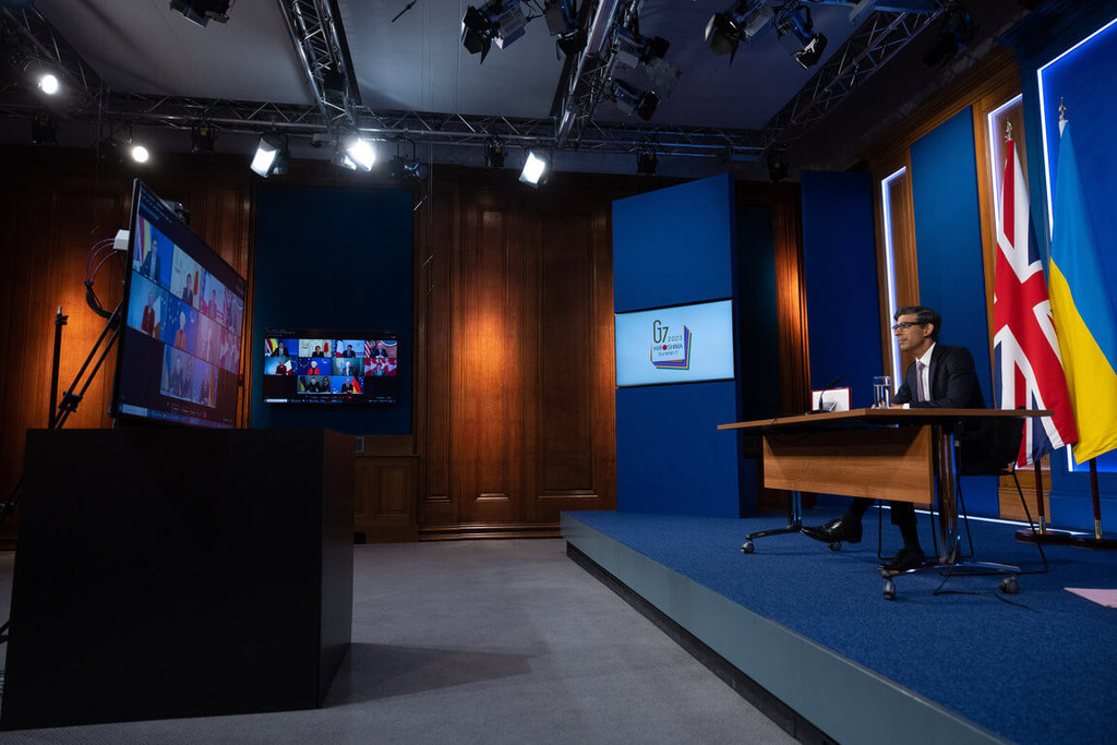 英國首相府一名發言人說,首相蘇納克(Rishi Sunak)24日在七大工業國集團(G7)與歐盟的視訊峰會上,針對中國所提停火方案表示,和平只能按烏克蘭所提條件達成。