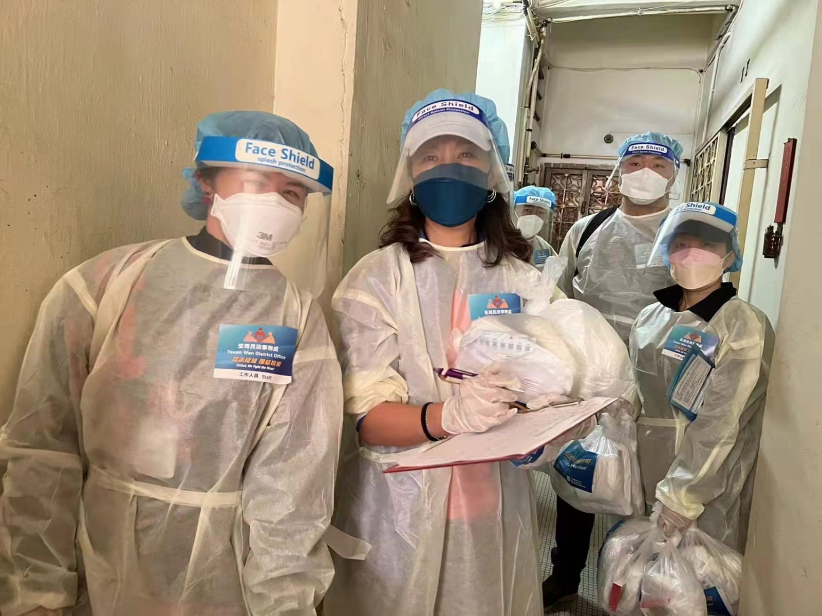 去年憑著「夢想之地」獲頒奧斯卡最佳女配角的韓國「國民奶奶」尹汝貞,今年受邀擔任頒獎人。她別上藍絲帶,表達對烏克蘭難民的支持。(美國影藝學院提供)