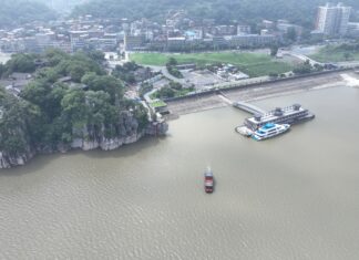 鄱陽湖水位突破15米 落星墩、石鍾山溶洞入水