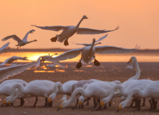 春暖鵝先知 山東榮成上萬隻大天鵝啟程北遷