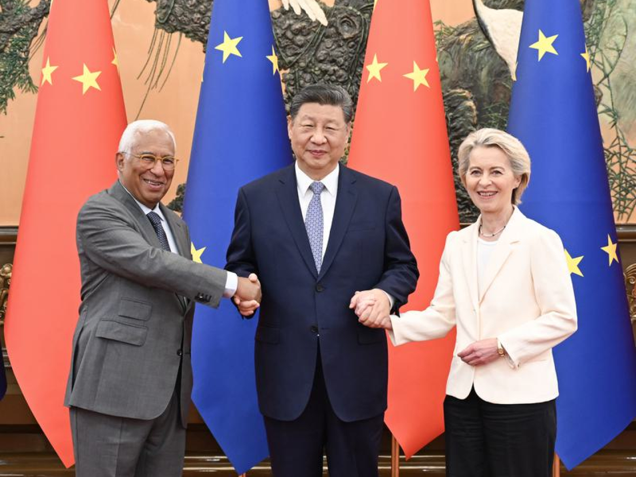 習近平又說,中歐要堅持開放合作,妥善處理分歧摩擦。歷史和現實證明,相互依賴不是風險,利益交融不是威脅,提升競爭力不能靠「築牆設壘」、「脫鉤斷鏈」只會孤立自己。他亦強調,要踐行多邊主義,維護國際規則秩序。