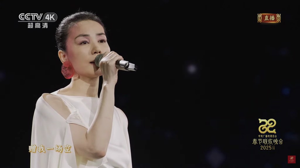 現年55歲王菲,以一套純白仙氣禮服登場,並獻唱她為央視春晚特別製作的全新單曲〈世界贈予我的〉,一開口「有人放煙花,有人追晚風…」才唱兩句,其清新如徹的嗓音,瞬間環繞整座舞台。