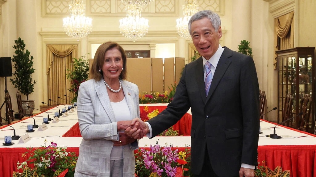 8月1日,由美國國會眾議院議長佩洛西(Nancy Pelosi)率領的六名美國國會議員訪問團拜訪了新加坡總統哈莉瑪(Halimah Yacob)和總理李顯龍。據新加坡外交部介紹,李顯龍在會上強調了穩定的美中關係對地區和平與安全的重要性。佩洛西乘坐的專機在當地時間8月1日凌晨4時20分左右抵達新加坡巴耶利峇空軍基地,一行人正在對新加坡進行為期2天的訪問。
