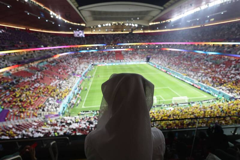 在伊朗佔領的看台上,用英文寫着 代表伊朗民眾抗議的巨幅標語”婦女的生命自由”,在顯現後不久便被撤下。