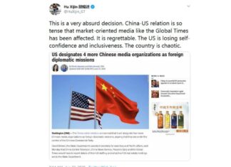 美方列四中官媒为外国使团 胡锡进贴文批做法荒唐