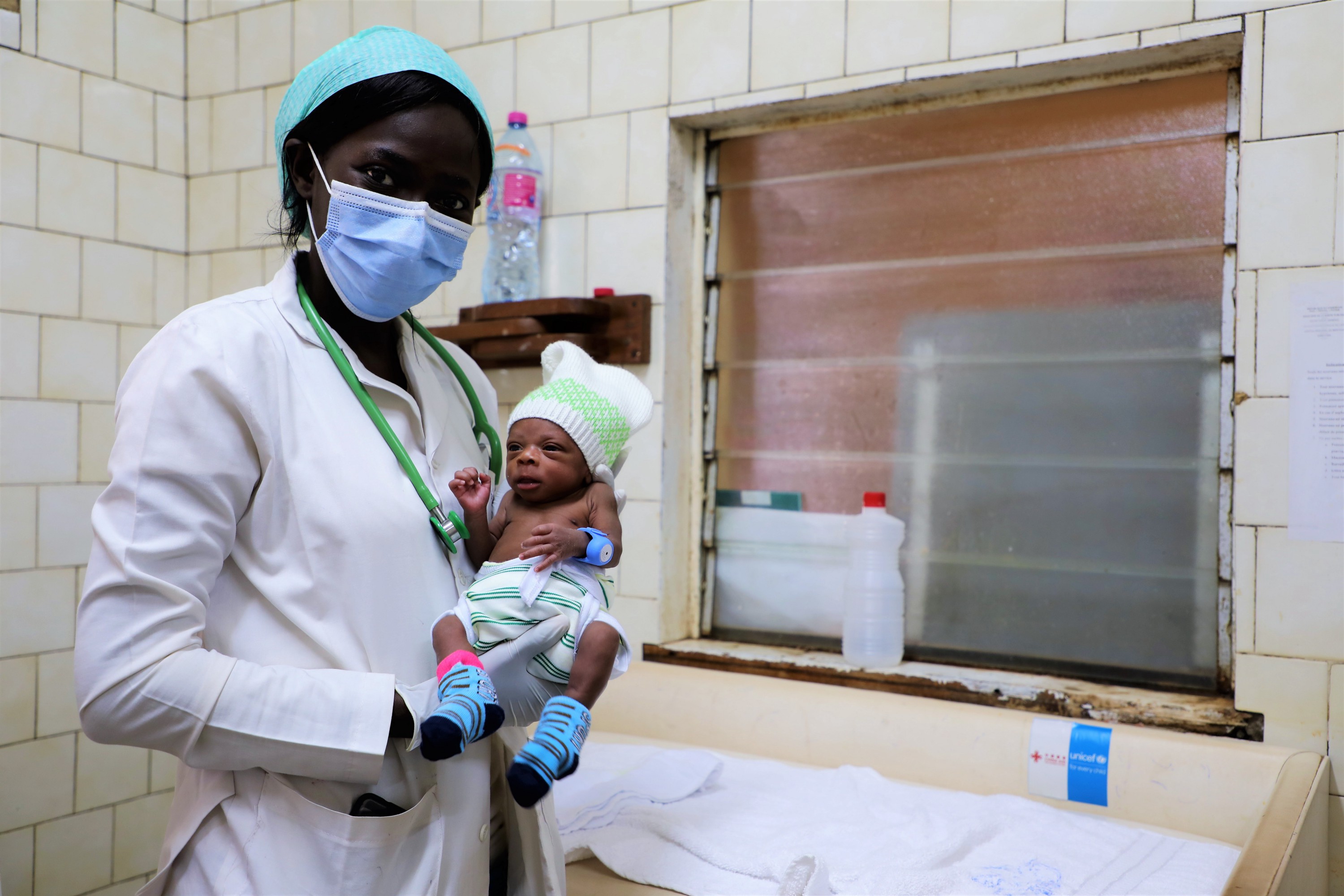 塞拉利昂一名早產兒在新生兒特護病房接受護理。病房設備由中國政府和聯合國兒童基金會共同提供。照片拍攝於2021年。(聯合國兒童基金會供圖)