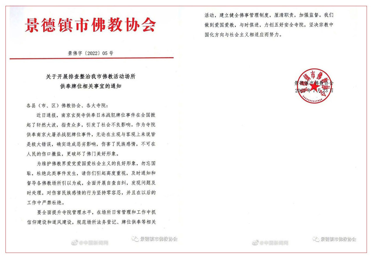 警方透露,玄奘寺今年2月就發現軍戰犯牌位後,一邊撤掉牌位,一邊隱瞞消息,方丈釋傳真不向相關部門報告,導致了最後事情以不可控方式流傳到互聯網上最大限度地發酵。