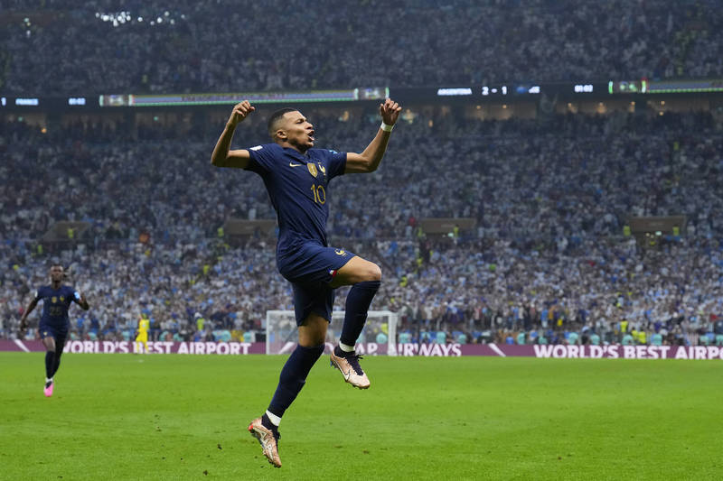卡達世界盃足球賽冠軍戰由衛冕軍法國對上「藍白軍團」阿根廷,兩隊過去3度在世界盃交手,阿根廷以2勝1敗占上風,而姆巴佩(Kylian Mbappe)、梅西(Lionel Messi)同為法甲聯賽巴黎聖傑曼隊(PSG)隊友,在世足決賽上演頂尖對決,且此役也是梅西最後一次在世足出賽,同樣備受矚目。