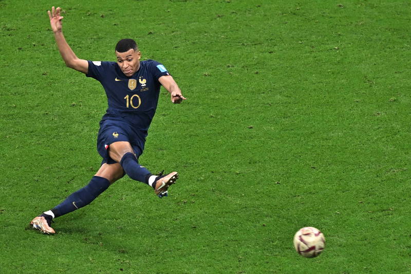結果延長賽,梅西先把握門前機會進球,想不到姆巴佩又用一次射門讓對手出現手球犯規,他成功操刀12碼,因此法國、阿根廷以3:3踢和,也是史上第三次決賽進入PK大戰。