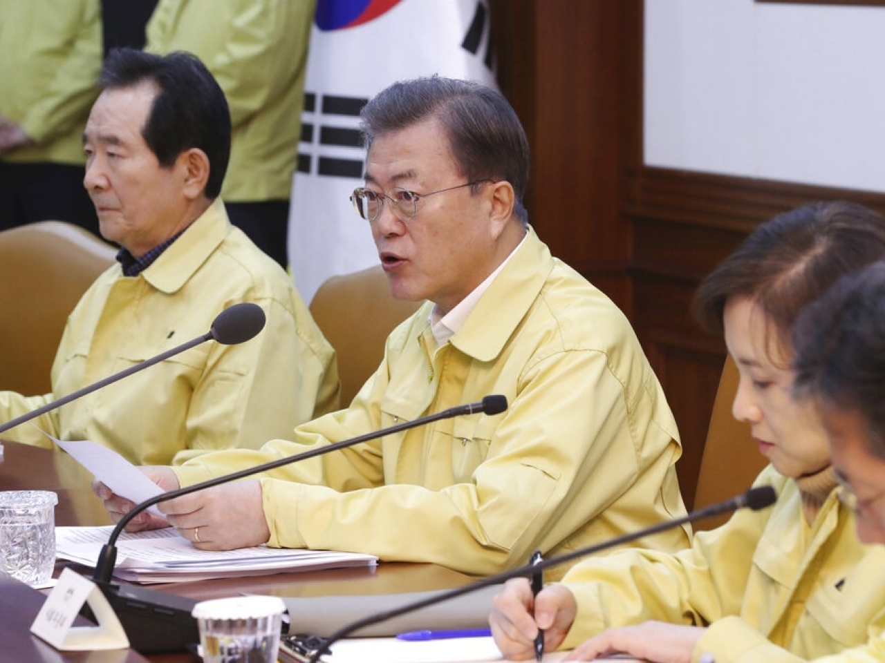 总统文在寅在新型肺炎疫情对策会上表示,根据传染病专家的意见和建议,决定将疫情预警上调至最高的「严重」级别,加强应对。