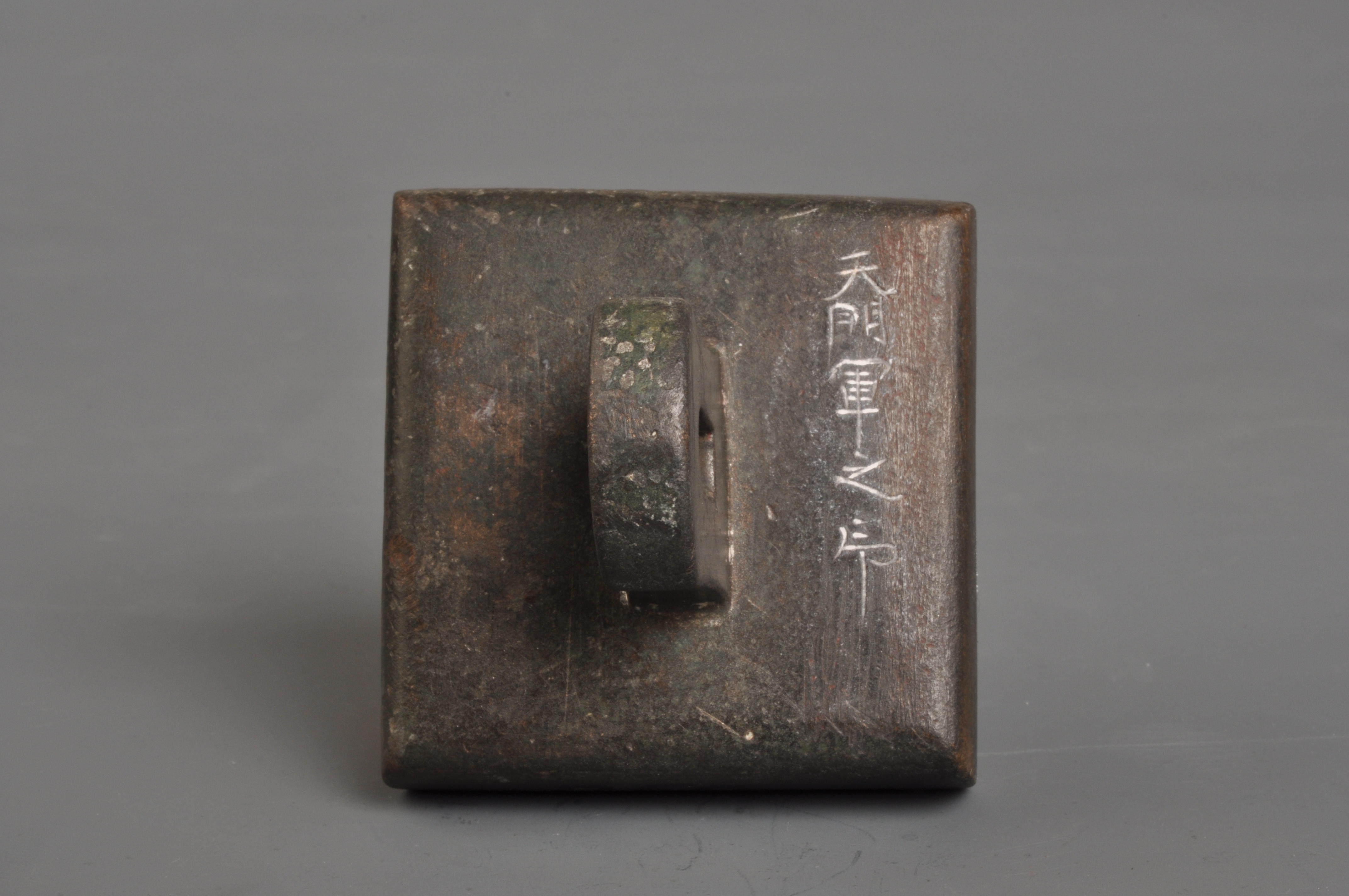 勾海燕:該印為青銅質,由銅片鑲成。通高4.3厘米、邊長5.25×5.3厘米、厚1.4厘米。印面略呈正方形,印文為漢字篆刻“天門軍之印”;印背楷書“天門軍之印”。印文筆畫細挺有力,圓潤活潑,與“雞林道經略使之印”“涪娑縣之印”“大毛村記”等唐代官印篆字風格基本一致。印文凸起,筆畫之間形成0.9厘米的溝槽。印紐扁平,中穿一圓孔,呈橋狀。根據這些特徵,可以認為這是一方唐代官印。又因其出土於渤海上京龍泉府,因此推測天門軍之印是一方渤海國印。