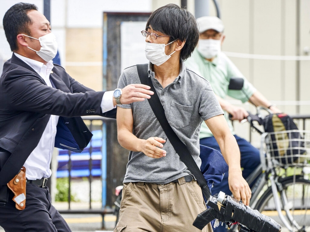 奈良警方說,行兇是一把自製手槍,被捕的41歲疑犯山上徹也承認開槍,在搜查他的寓所時發現多幾把槍。