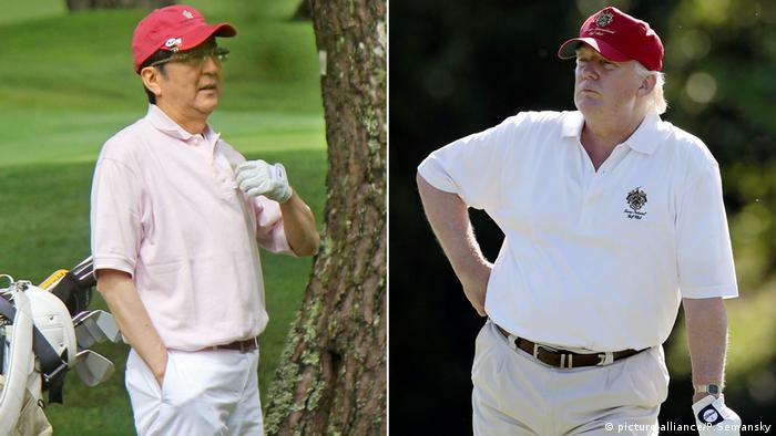 共同愛好 安倍晉三2017年9月宣佈提前大選。當時有分析認為,他押注選民將團結一致,支持他與美國總統川普結盟對抗北韓。圖為安倍晉三訪美期間與川普打了一場高爾夫。安倍在大選中勝出連任,並於2019年11月20日成為日本在位時間最長的首相。