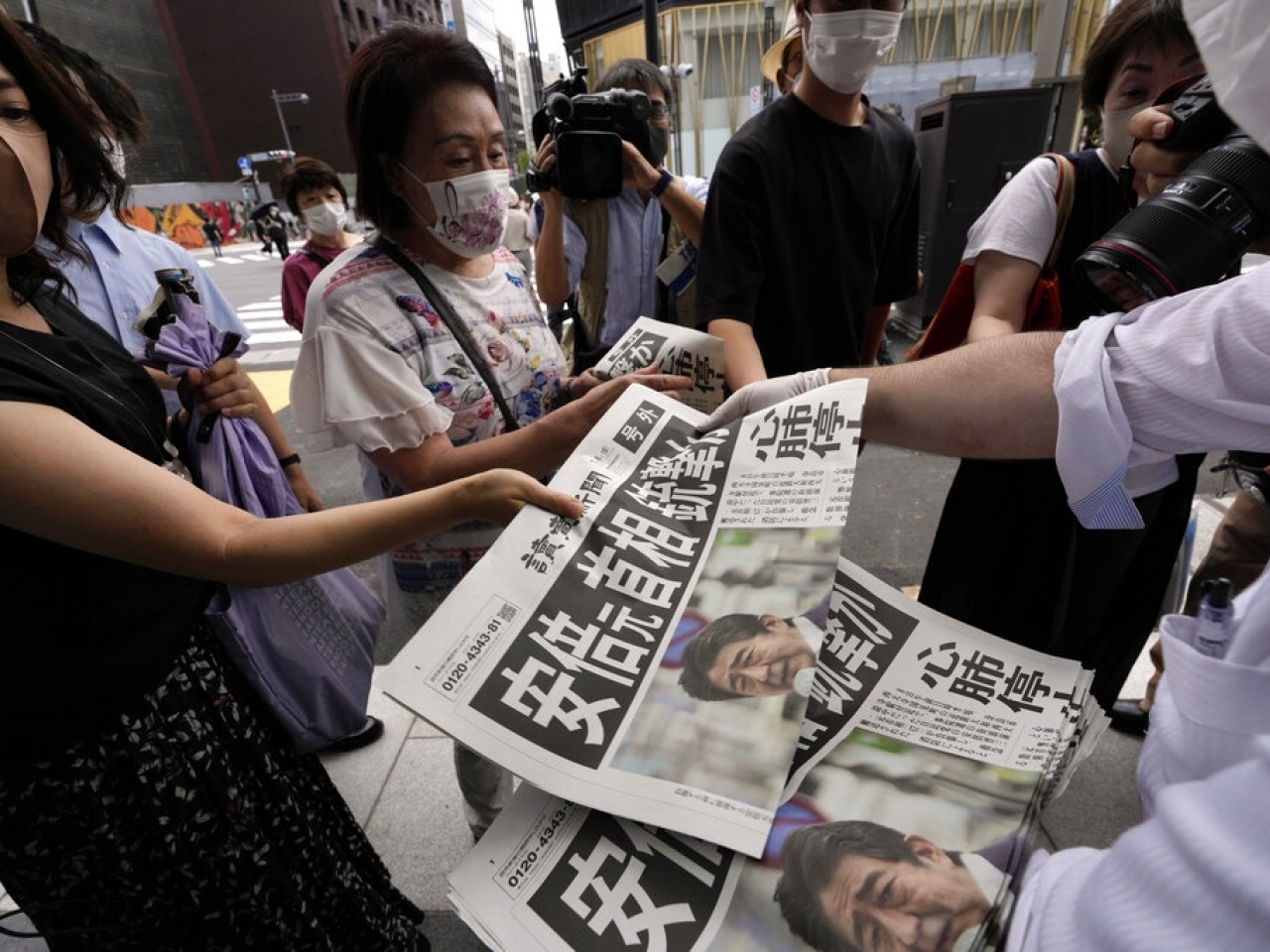 日本傳媒以號外方式報道安倍中槍的新聞。(美聯社)