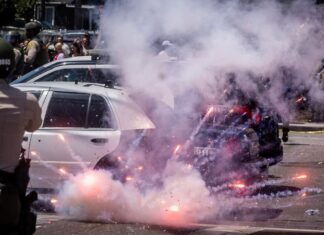 美國聯邦執法人員與抗議群眾之間因當局掃蕩移民爆發衝...