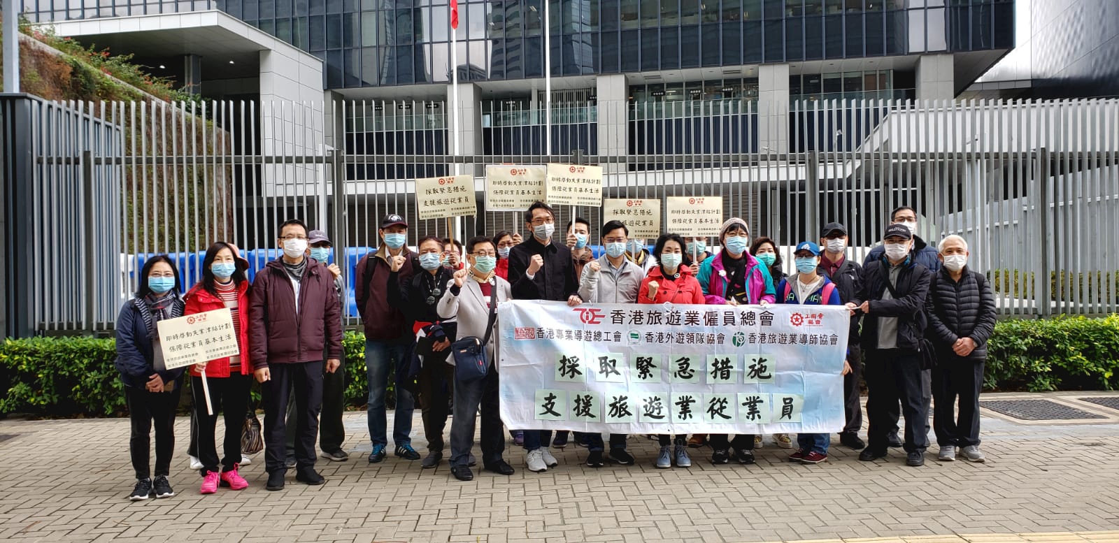 工聯會屬會香港旅遊業僱員總會、香港專業導遊總工會、香港外遊領隊協會及香港旅遊業導師協會,聯同工聯會立法會議員陸頌雄,今天下午到政府總部向行政長官遞交請願信,反映旅遊業受到社會事件及疫情的直接衝擊下,從業員現時手停口停的苦況,要求政府採取緊急措施,支援從業員度過難關。