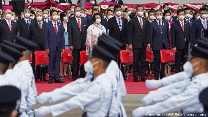 中國黨和國家領導人習近平參加了香港主權回歸25週年慶典活動,儘管街頭掛滿了彩旗和歡迎標語,但北京高壓和新冠疫情的雙重衝擊之下,香港民間並沒有太多的節日氛圍。