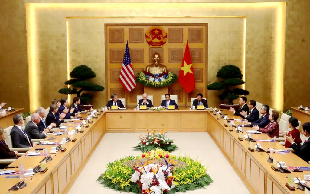 周一,美國總統喬拜登還與越南國家主席武文賞舉行會談,並和越南總理範明正一起參加了兩國商界領袖會議。