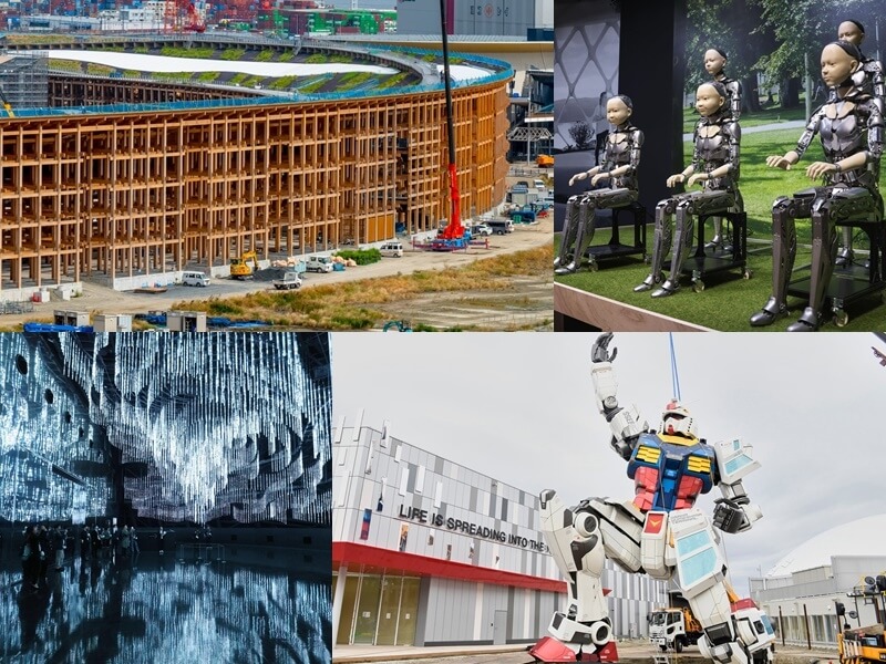 其中「生命的未來」展館由日本機器人教父石黑浩規劃,外觀以「水」和「海岸線」為象徵元素,外部被水覆蓋,四周是蕩漾的水面,雕刻出大地的動感。展館中不僅能看到各種機器人,也設有虛擬展館,讓民眾體驗未來50年的城市規劃及各種「未來產品」,擴大對未來的想像。