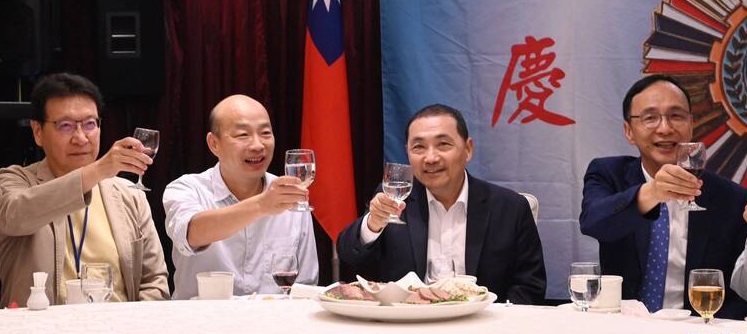 黃復興黨部今舉行67週年慶祝餐會,朱立倫、侯友宜、韓國瑜和趙少康(右至左)均出席。