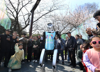 (神州寫真)武漢賞櫻季:機器人成“明星” 科技色彩...