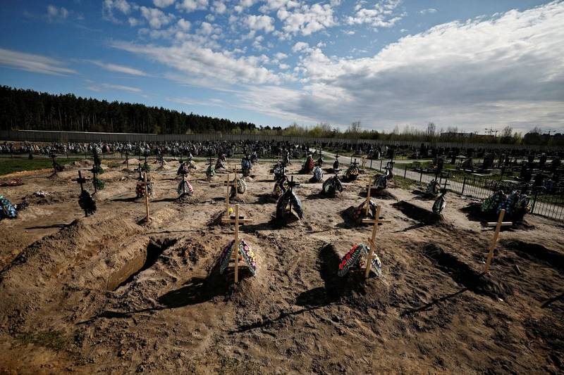 烏克蘭政府將在下週推出一套記錄俄軍戰爭罪行的系統,名為「劊子手之書」。圖為布查墓園。(路透)