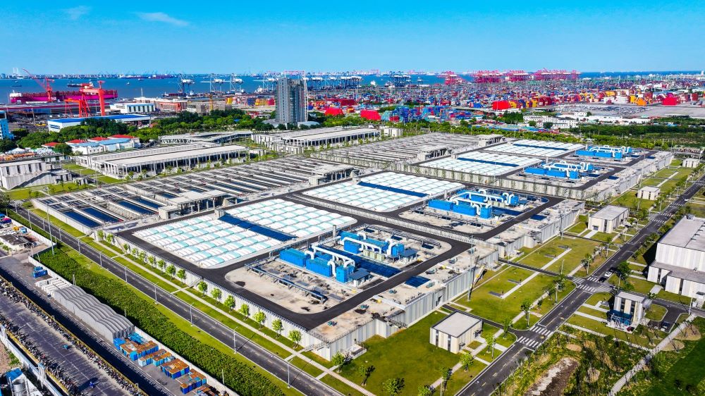 航拍竹園四期污水處理廠與外高橋造船。(上海城投供圖)