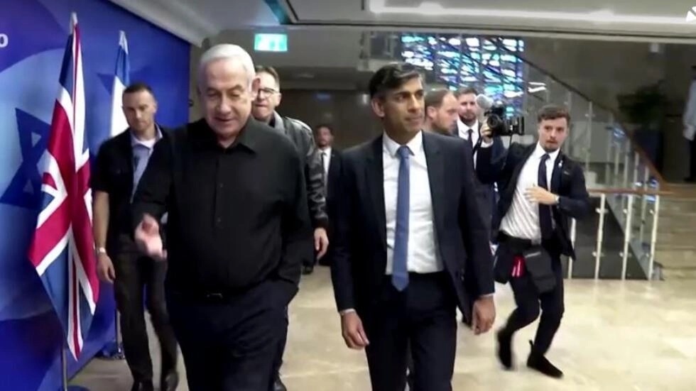 英國首相蘇納克與以色列總理內塔尼亞胡2023年10月19日耶路撒冷 © 路透社視頻截圖