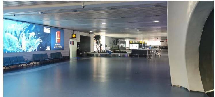 海南三亞突封城,中官媒釋出的機場畫面是空無一人。與網路爆出很多旅客被迫滯留機場的情景截然不同。(圖擷取自中新經緯新聞畫面)