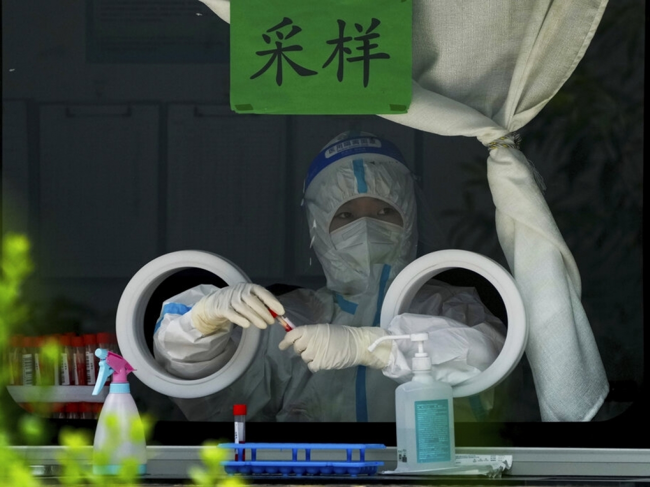 在北京,一名工作人員正準確為民眾採樣檢測。(美聯社資料圖片)