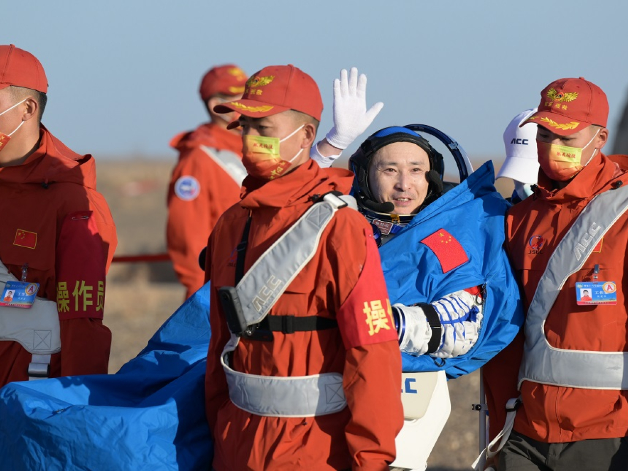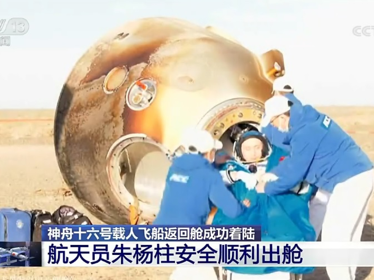 中華新聞通訊社/中華時報10月31日訊)神舟十六號載人飛船返回艙今早8時11分在東風著陸場成功著陸,3名航天員順利出艙。現場醫監醫保人員確認航天員景海鵬、朱楊柱、桂海潮身體健康狀況良好,神舟十六號載人飛行任務取得圓滿成功。