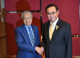 泰国首相普赖特·尚奥查与马来西亚总理马哈蒂尔·本·穆罕默...