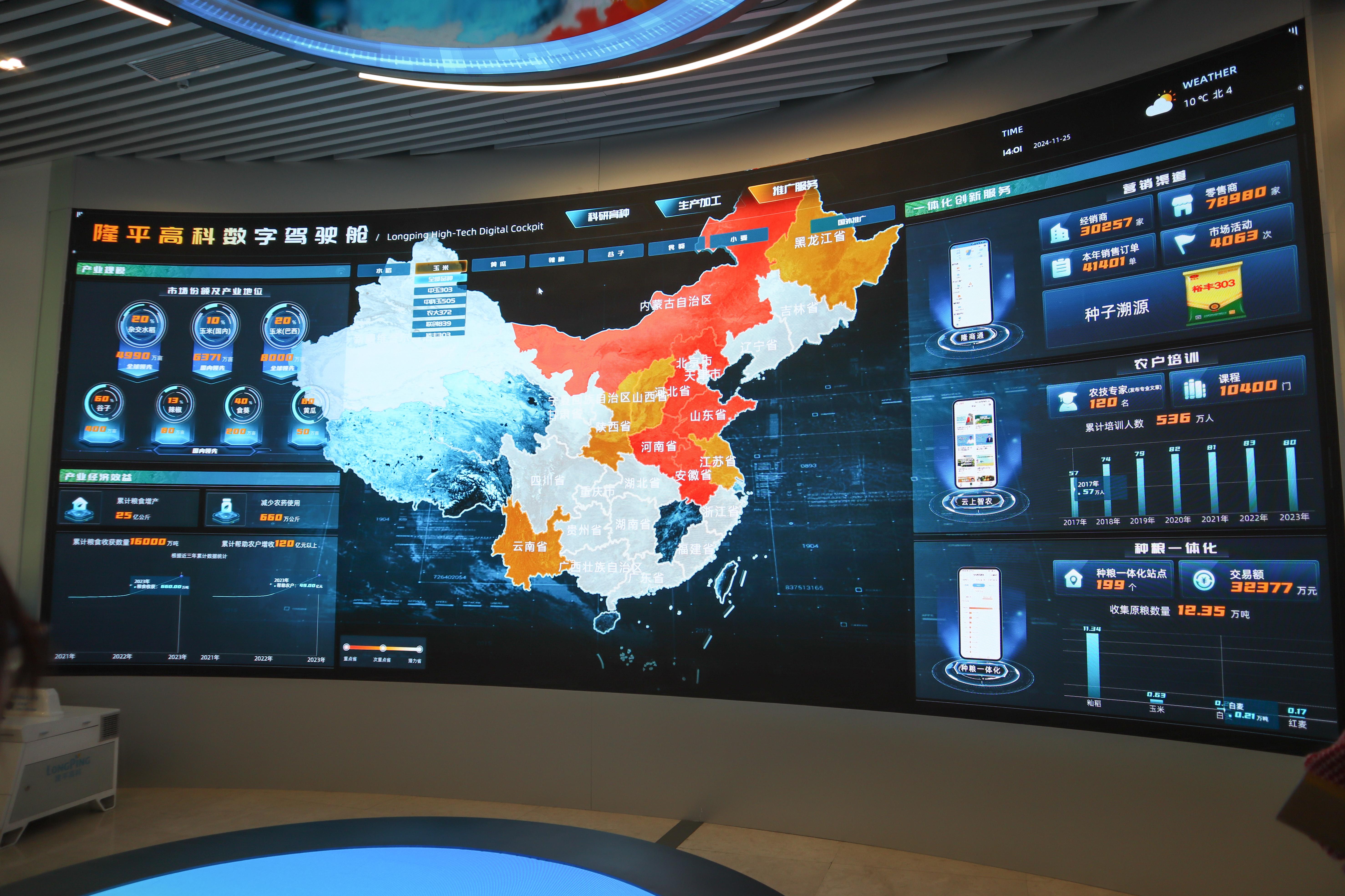 圖為隆平高科總部的數字駕駛艙顯示屏。蔣文月 攝