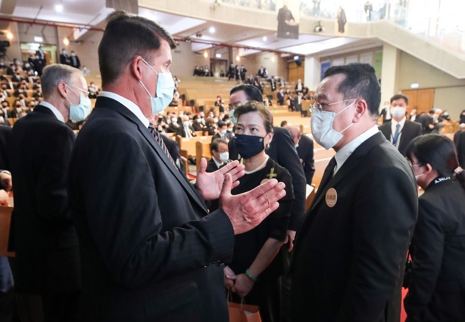 (中华时报/华闻社9月19日台北电)今天(星期六)李登辉的追思道别礼拜在台湾新北市的淡水真理大学举行,美国副国务卿克拉奇、日本前首相森喜朗、总统蔡英文等党政官员全程参与这场2小时的追思告别礼拜,日本台湾交流协会台北事务所代表泉裕泰宣读日本前首相安倍晋三的悼念词,西藏精神领袖达赖喇嘛也通过视频短片寄送追思悼念。