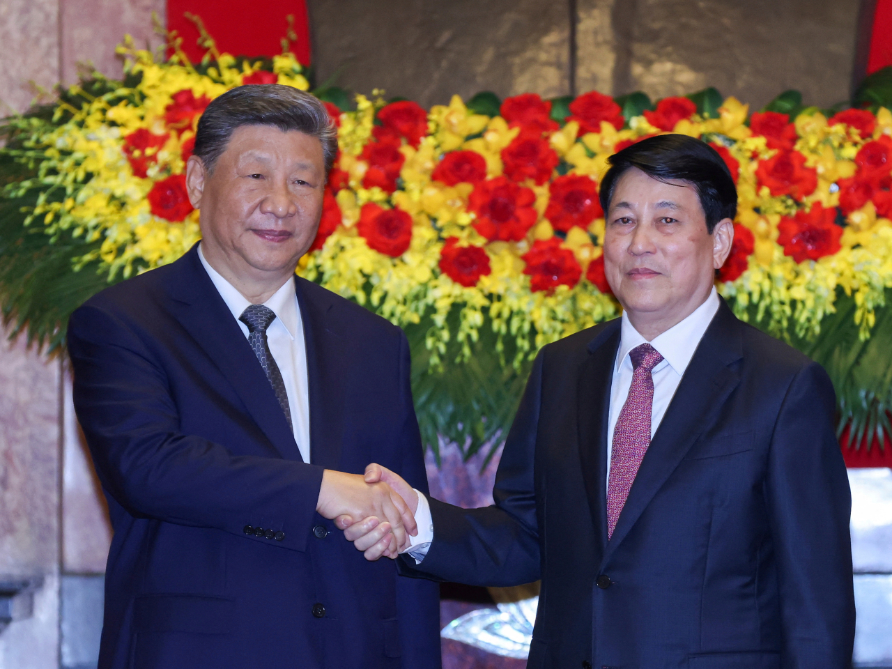 習近平展開東南亞三國的國事訪問行程,14日中午左右抵達首站越南首都河內,越南國家主席梁強等黨政領導人到機場迎接。越共中央總書記蘇林為習近平舉行歡迎儀式。蘇林在國營傳媒發表文章,表示希望加強兩國在國防、安全和基礎設施的合作。